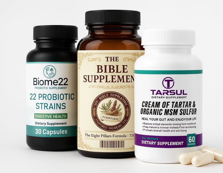 Discover our range of innovative products, including Tarsul for gut health, Biome22 with 22 probiotic strains, and Biblepill with essential nutrients.